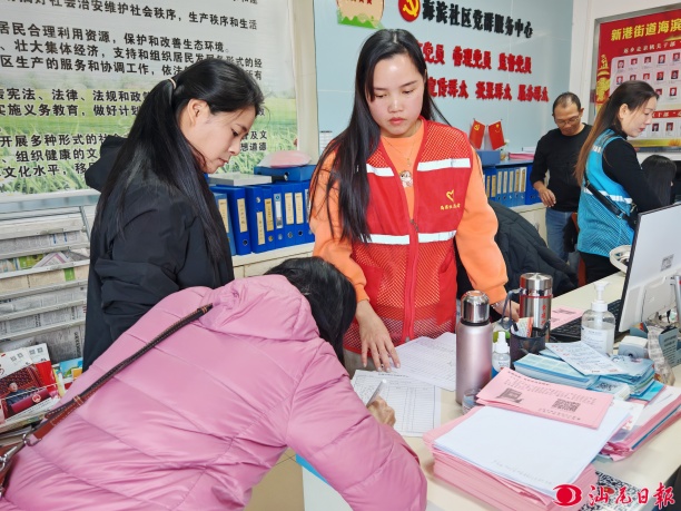 海濱社區工作人員為前來辦事群眾辦理業務。