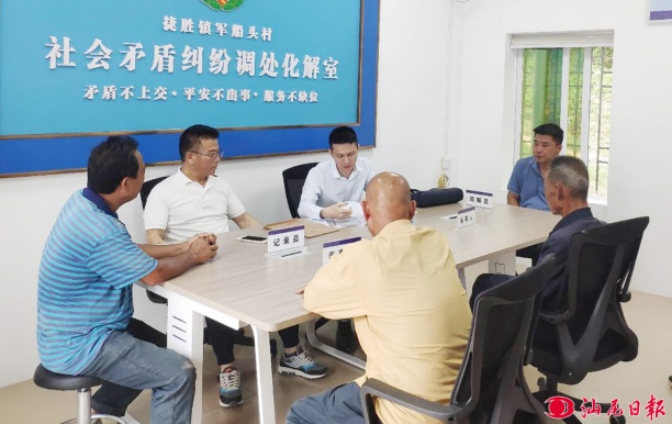 工作人員在黨群服務中心調解村民矛盾糾紛。