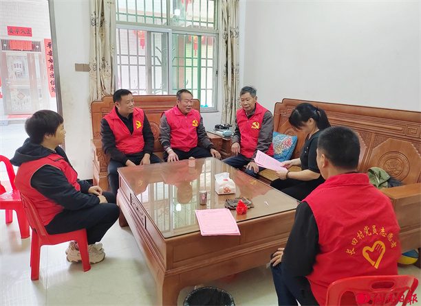 南萬鎮黨員干部入戶宣傳綠美生態建設,動員群眾一起參與植樹活動。