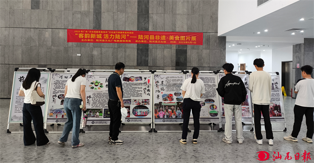 “五一”期間,陸河縣文廣旅體局舉辦“客韻新城 活力陸河”——非遺·美食圖片展,通過圖文并茂的方式,介紹陸河各項非遺文化和客家特色美食,讓更多市民游客了解陸河客家文化魅力。圖為圖片展現場。