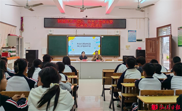 汕尾日?qǐng)?bào)訊 (記者 劉佳倫 通訊員 林雪丹 文/圖 )近日,陸豐市人民法院組織法院干警走進(jìn)陸豐烏坎學(xué)校,開(kāi)展“利劍掃黑進(jìn)校園 凈土護(hù)苗保平安”為主題的法治宣傳教育活動(dòng),增強(qiáng)青少年的法治觀念和安全防范意識(shí),有效預(yù)防和遏制黑惡勢(shì)力向校園滲透,營(yíng)造安全、和諧、穩(wěn)定的校園環(huán)境。