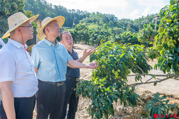 在海豐縣昊成種養專業合作社,鄭海濤仔細詢問今年荔枝種植效益、市場銷售等情況。他強調,要開展形式多樣的展銷對接活動,充分利用網絡直播、短視頻、展銷會等形式進行宣傳推介,持續做強汕尾荔枝品牌;加強與頭部物流企業合作,謀劃開通高鐵“荔枝專列”,讓汕尾荔枝走向大江南北。要深化政企協作開展助農采購,加強與省內外荔枝精深加工企業對接,助力擴銷路、穩價格;政府和企事業單位要帶頭參與,積極采購和宣傳推廣,共同為荔農鋪就致富之路。要深化“荔枝+文旅”融合發展,結合暑期旅游熱潮,推出以荔枝為主題的精品旅游路線,培育荔枝科普、親子采摘、文化體驗等特色業態,激活更多消費場景。