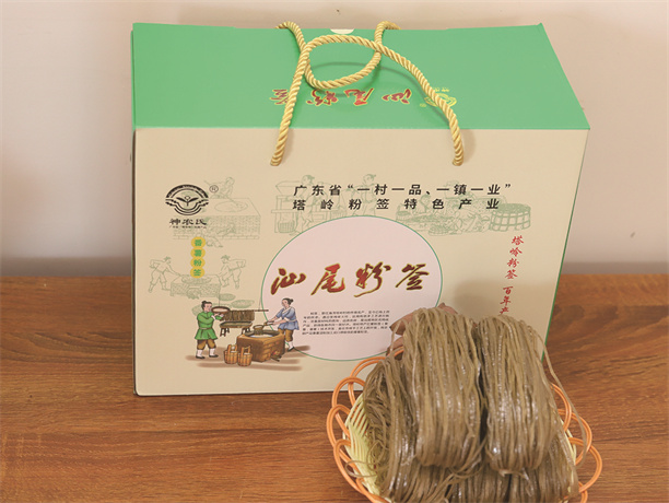 番薯粉絲,又稱粉簽,是汕尾紅海灣塔嶺村的傳統名產,至今已有上百年的歷史。汕尾紅海灣石狼山種養專業合作社憑借旗下的核心品牌產品“塔嶺準簽”地道的口感與匠心工藝,被認定為第二批“汕尾老字號”。