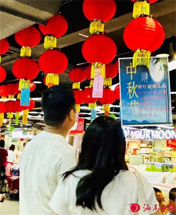 9月16日,在市區信利超市內,一排排紅彤彤的燈籠下懸掛著許多趣味燈謎,吸引消費者駐足觀看、猜謎。據了解,這是超市舉行的中秋節猜燈謎活動,消費者猜中謎題即可兌換相應禮品,營造了濃厚的節日氛圍。